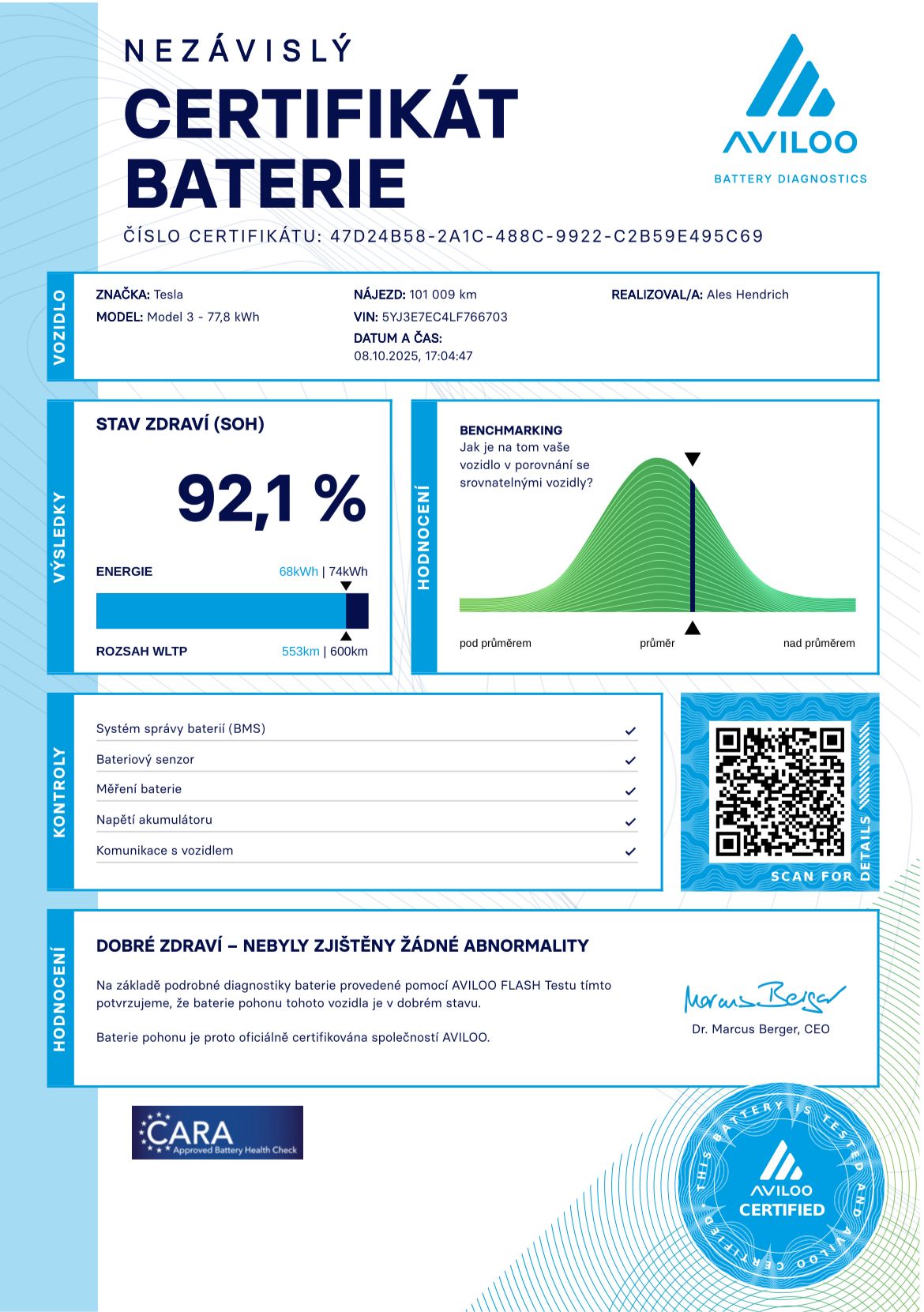 Aktuálně, při SOH 92,1 %, činí dojezd přibližně 488 km.